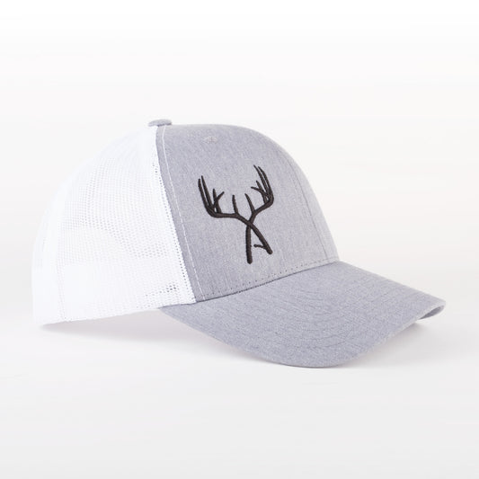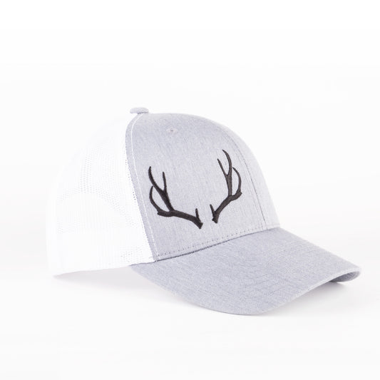 Ash/White Embroidered Crossed Antler Trucker Cap