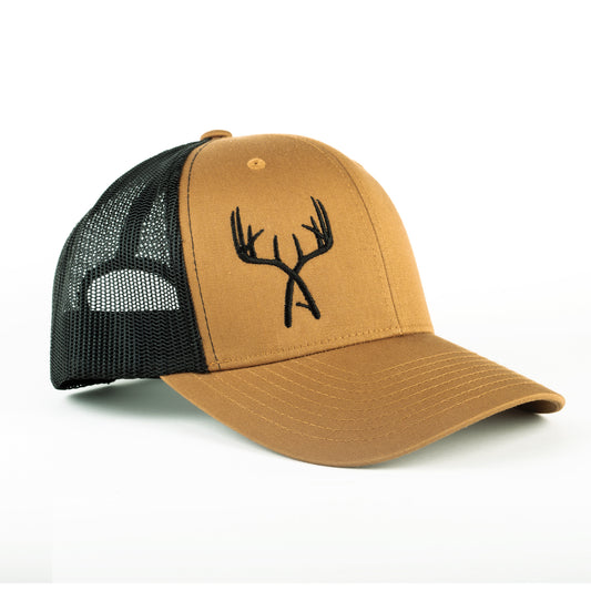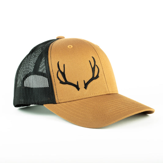 Camel/Black Embroidered Open Antlers Trucker Cap