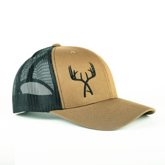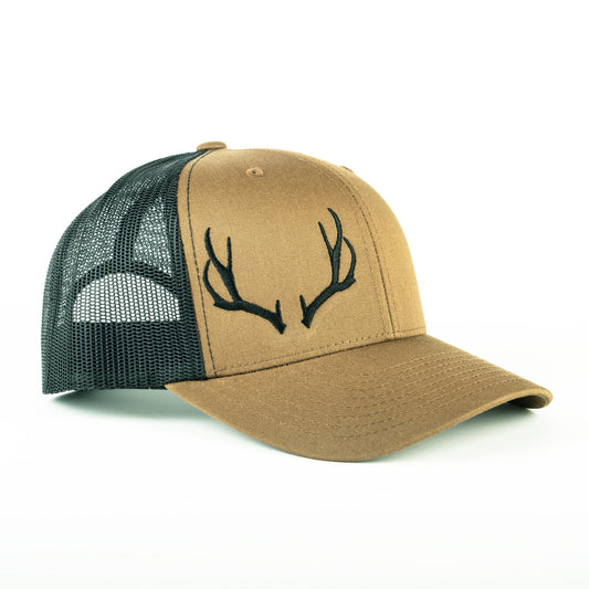Coyote/Black Embroidered Open Antler Trucker Cap