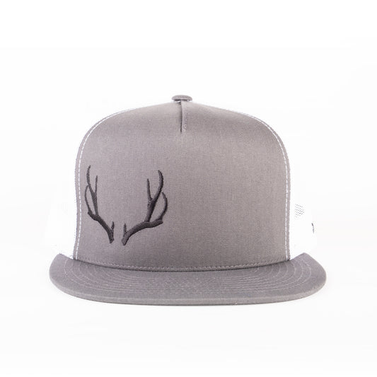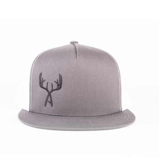 Charcoal/White Embroidered Open-Antler Trucker Cap (Flat bill)