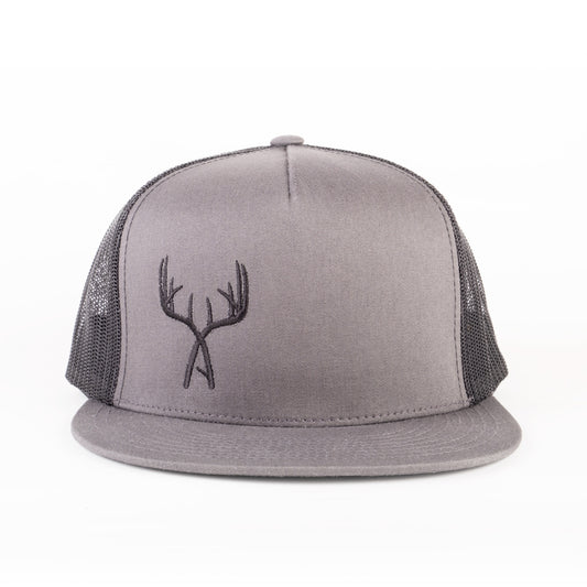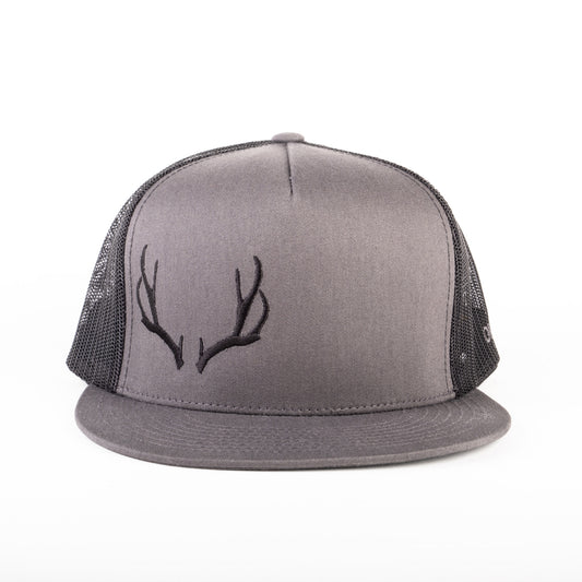Charcoal/Black Embroidered Open Antler Trucker Cap (Flat Bill)